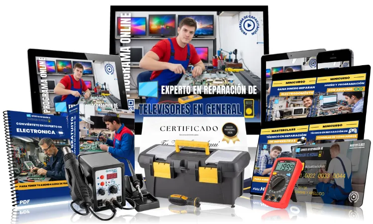 Un programa estructurado para que cualquiera, incluso sin saber nada de electrónica, aprenda a reparar televisores como un técnico profesional y cobre por una sola reparación lo que muchos ganan en todo un día de trabajo.