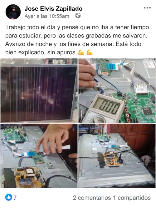 Si aseguras tu cupo, ahora tendrás acceso a la comunidad privada más grade en Facebook de profesionales y estudiantes en reparación de televisores, donde podrá absolver tus dudas rápidamente, compartir experiencias y obtener consejos basados en experiencias de quienes ya han recorrido este camino.